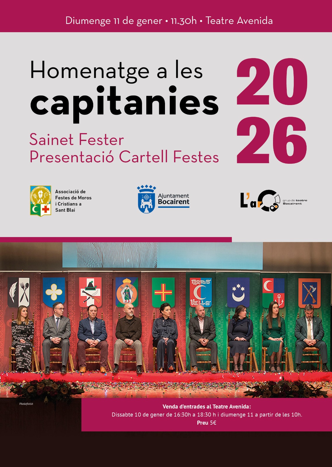 Després es realitzarà la presentació del CARTELL DE FESTES 2026,obra de Núria Tamarit, i seguidament es projectarà el VÍDEO PROMOCIONAL de les festes 2026, a càrrec de l’Ajuntament de Bocairent.